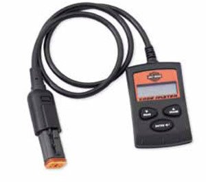 Code Master Service Code Reader. Be prepared when you visit your dealer for service. Diagnostic code scanner easily retrieves trouble codes from your vehicle's computer to diagnose problems. The pocket-sized diagnostic code reader simply plugs into your bike's vehicle port, and automatically connects to the onboard computer. It reads the Diagnostic Trouble Codes (DTC) and displays the DTC description on a bright LCD screen. The Code Reader Master allows you to clear codes with the touch of a button, and also lets you to double check the current calibration ID for your motorcycle. The Code Reader is powered by your bike when connected. Kit includes palm-sized reader, J1850 connection cord, and instructions. Available starting March 2010.32312-10For use on '02-'10 VRSCTM, '07-'10 XL and XR, '02-'10 Dyna®, '01-'10 Softail®, and '02-'10 Touring models equipped with J1850 protocol On-Board Diagnostics information plug. Read more...